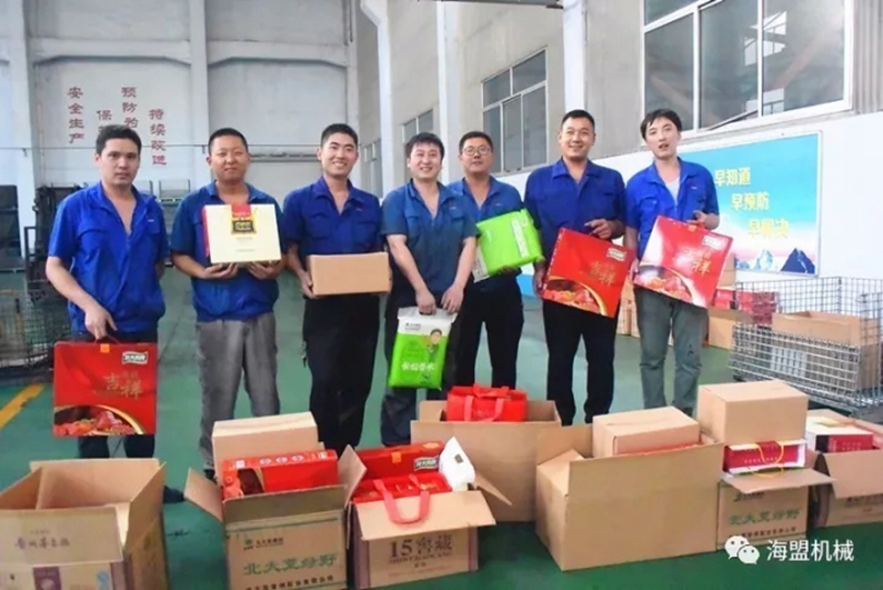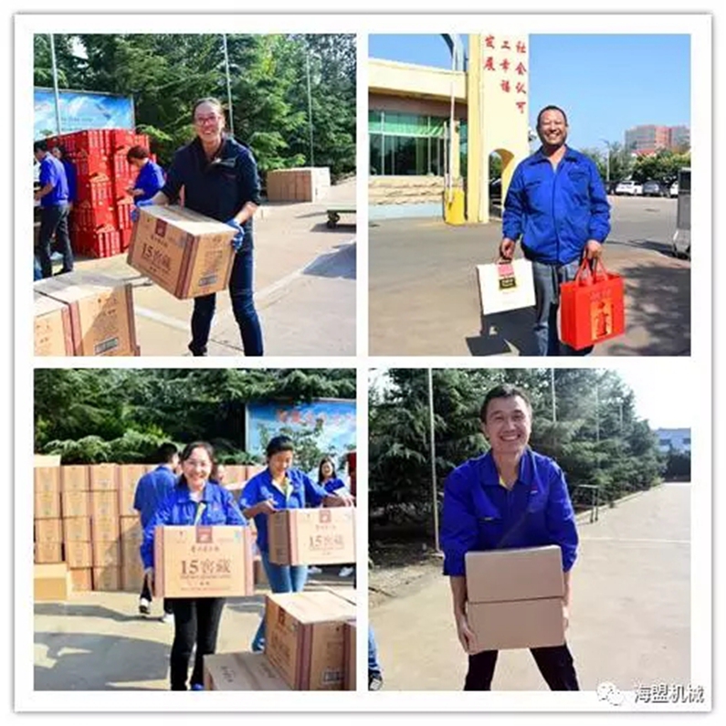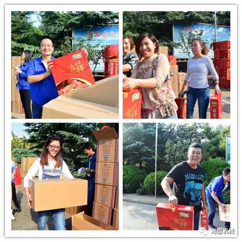 这是员工领福利时有感而发,顺口编的小诗,接下来,我们一起来看一下同事们领中秋礼品时的快乐笑脸和热闹场景吧!